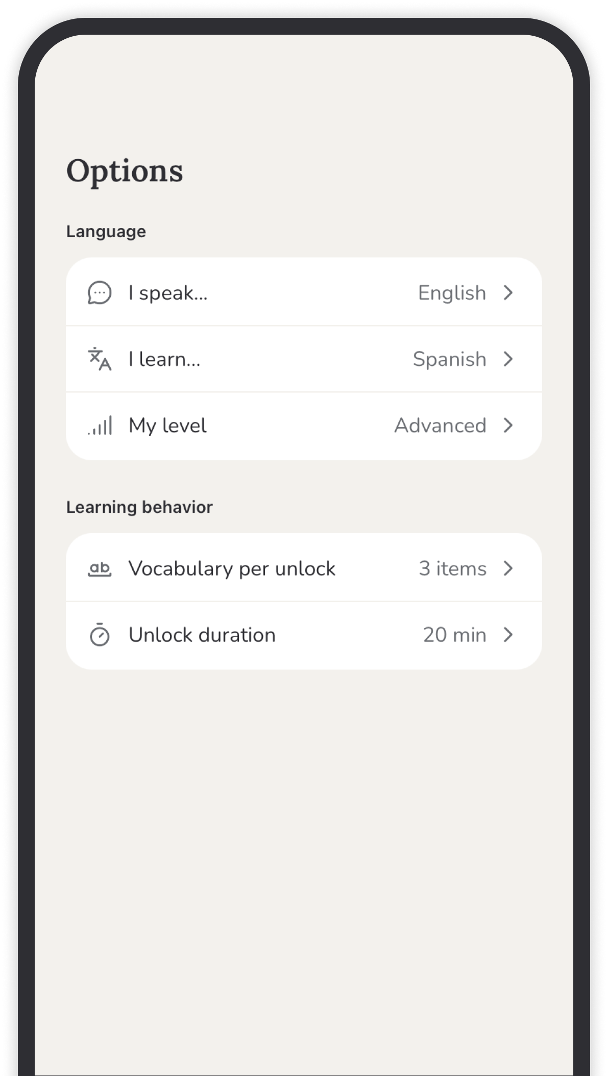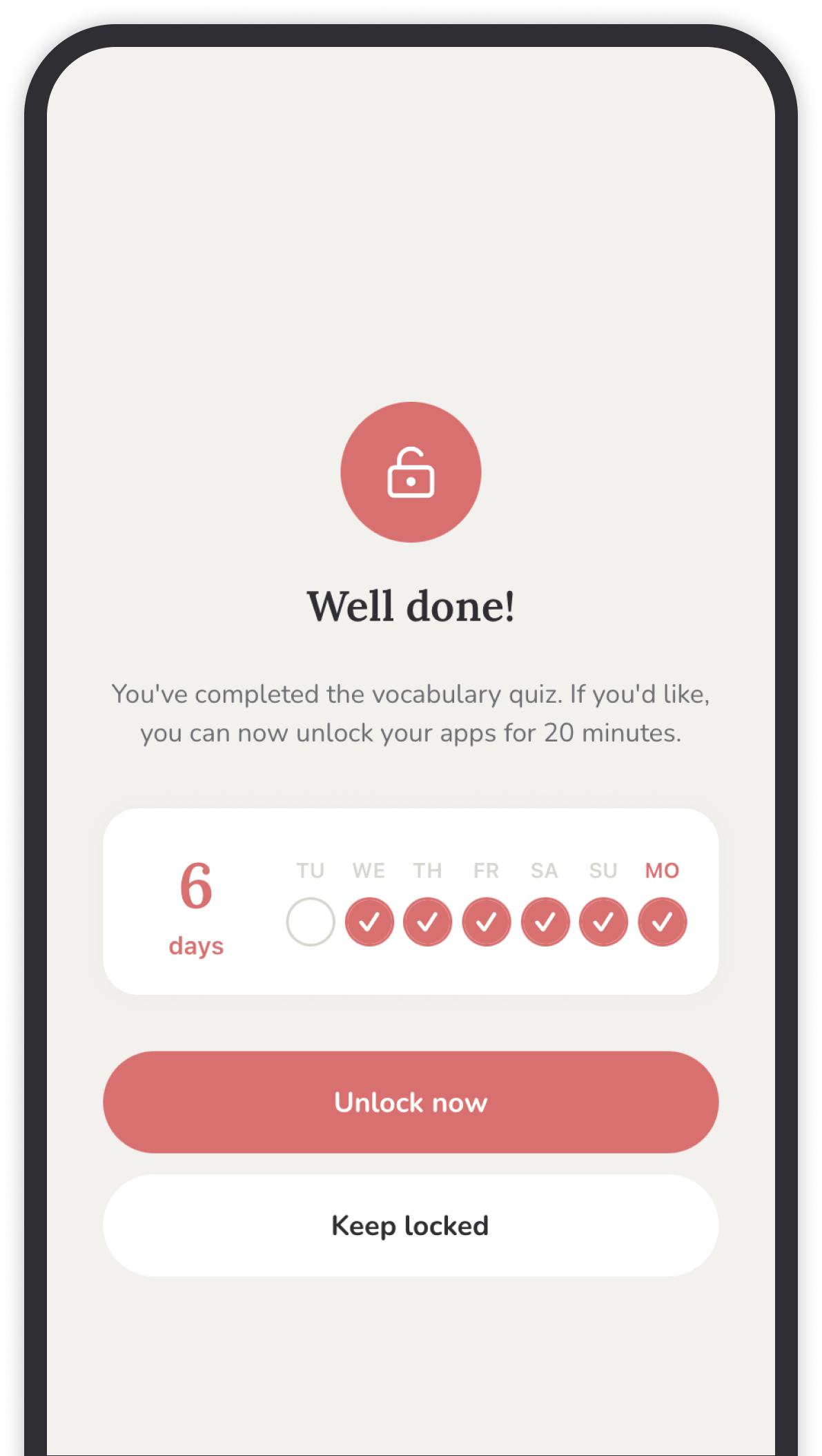 Your apps are unlocked. Your vocabulary grows with every unlock.